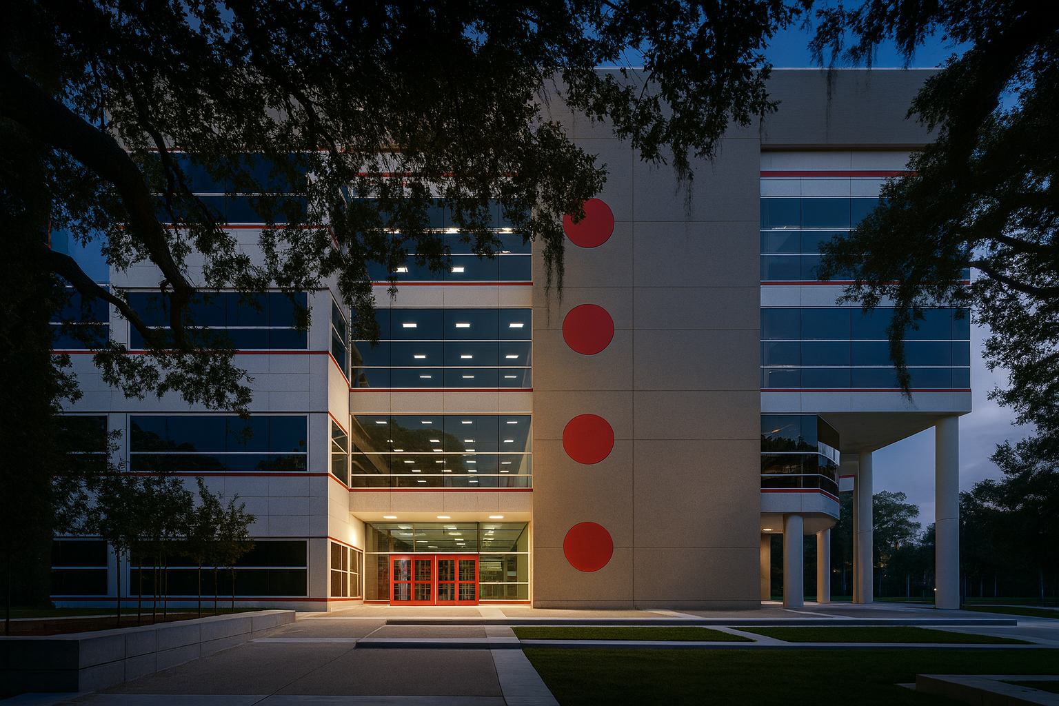 Designed as a bold academic landmark, the University of Houston Science Center unifies advanced research facilities with a striking architectural presence that enhances the campus edge along I-45.